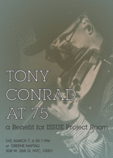 MORE INFO: http://issueprojectroom.org/event/tony-conrad-at-75-benefit