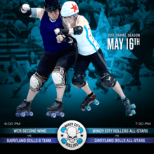 The Windy City Rollers All-Stars and Second Wind will be taking on the Dairyland Dolls A and B teams from Madison, Wisconsin's Mad Rollin Dolls. The doors open at 5:30p and the first whistle blows at 6p.