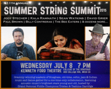 Dozens of world renowned acoustic musicians will gather from across the US, Wednesday July 8, 2014, 7 p.m., at College of the Siskiyous' Kenneth Ford Theatre for the 11th annual Summer String Summit, produced by renowned acoustic musicians and educators Tristan and Tashina Clarridge.