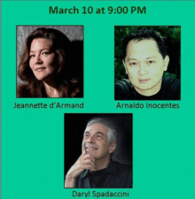 Featured performers are: March 3 at 7PM: Arnaldo! Drag chanteuse and Cheryl Serio with musical director, Victor Janusz March 3 at 9PM: Judy Ann Moulton, Kim Maguire and Marcus Wolland with musical director, Victor Janusz March 10 at 7PM: Ter Gallagher and Jerome Elliott with musical director, Daryl Spadaccini March 10 at 9PM: Jeannette d'Armand and Arnaldo Inocentes with musical director, Daryl Spadaccini