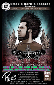 Smokin' Gorilla Records is proud to host a series of 3 Midwest tribute concerts honoring the life of the greatest Evil Disco Master of our generation, Wayne Static of Static-X. Many Original Midwestern Bands & Artists will join forces and perform Exclusive music as part of an ALL STAR lineup of talent. Be sure to get there early and celebrate the community of artists growing their talents together to support arts and education and support programs as part of The Jungle Vine Concert Series & #SmokinGorillaRadio. The Concert Features performances by GREEN JELLO, KRIADIAZ, INFANTRY#333, Billy Youngblood, Hell Came Home, Nukklhed, Return To Ashes + an All Star INFANTRY #333 set of Live STATIC-X music & much much more! Tickets are Only $5 in Advance Presale VIP-Special & $10 day of show. Brought to you in part by The Jungle Vine Concert Series.