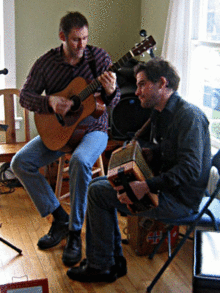 Finale Third Wednesday, Celtic Lunch Hour Concert with Johnny "Box" Connolly from Dublin with Cary Novotny of Cul an Ti on Wednesday, May 16, 2012 from 12:15-1:15pm at the Tualatin Heritage Center, 8700 SW Sweek Drive. www.rootsworld.com/interview/connolly.html. All community. Please note, cash or check only for admission at the door and for cd's that will be for sale. Hosted by S & A Irish Entertainment Notes: Bring your brown paper sack lunch and enjoy an hour of some of the best Irish music by one of the top players in the world! The names "Johnny" and "Connolly" seem to somehow add up to "Box Player." Connemara melodeon player Johnny Connolly and his son, Johnny Og Connolly came first but Johnny B. Connolly, also known as "Johnny Box" has hit the Irish music scene with a flourish and with a little help from some very talented and well-connected friends. The 35 year-old Dublin native has been playing music since he was 8 years old. "I started playing the whistle and I didn't move onto the accordion until I was 12," explains Connolly. His mother emphasized early musical education for Johnny and his 3 sisters and, fortunately enough, another branch of the family was taking the same tact. "Tom (flute) and Eamon Doorley (fiddle) (Connolly's cousins and members of Danu) are of a similar age Tom is two years older than me and Eamon is two years younger than me so we used to hang out a lot as kids. So not only did we see each other socially, but we had something else to share as well, which was the start of our music. It went on from there over the years into the session scenes." At 17 though, Connolly joined the Celtic ensemble Anam and spent two years honing his craft both in Dublin and touring festivals throughout Europe and Ireland with the group. "That was when Danu was taking off. We'd play together in sessions or whatever but then I went to America." Connolly still delights in playing with the Doorleys. "We still meet up all the time. They've come through Portland a couple of times and every time I go home I always hook up with them. It's great to see them and play socially like we always did. It just sort of turned out that way the way they went and I went my way. There wasn't really any particular reason why it happened like that." Cary Novotny has asserted himself in the pantheon of Irish guitar players with his seemingly unending energy. Cary has recorded and performed with many great bands in the world of Irish music, including Johnny B Connolly, Kevin Burke, and the "The Bridies", featuring fiddlers Maire Egan and Brenda Curtin of Michael Flatley's "Lord of the Dance." Novotny infuses traditional melodies with undeniable contemporary groove, appealing to the tastes of the modern audience, yet based in the centuries old tradition of Irish music.