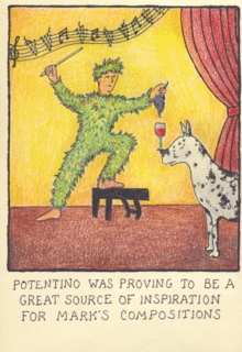 Thursday 17th March 2016 Potentino Wine Concert and the Potentino Film Night £25 Drinks 7pm * Concert 7:30pm The Potentino Wine Concerto by Mark Springer and performed by Mark Springer and The Lochrian Quartet * 20 minute interval - Potentino Wines * Film 8.30pm Projection of Potentino Chronotope directed by John Maybury Potentino Film