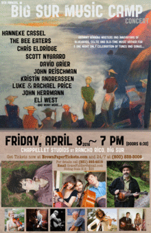 Featuring Scottish Fiddle Champion Hanneke Cassel, Bluegrass Guitar wizard David Grier, Singer/Writer/Percussive Dancer Kristin Andreassen, Mandolin legend John Reischman, Chris Eldridge (of Punch Brothers fame), Chambergrass alchemists The Bee Eaters (featuring 6-time National Fiddle Champions Tashina & Tristan Clarridge), Innovative Composer/Guitarist Scott Nygaard, Old-Soul Pop Duo DEAN!, Neo-Old-Time Singer/writer Eli West, Appalachian Music Master John Herrmann, Hometown Rising Star siblings Grace and Nandi Forrest, and more...