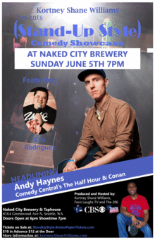 We have a very special comedian at Naked City Brewery, Sunday June 5th. From Comedy Central Half Hour and Conan, Andy Haynes