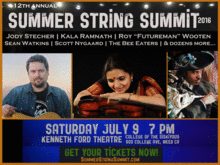 The Summer String Summit has earned a reputation as an evening of epic proportions, each July uniting a staggering array of the most influential and innovative acoustic performers, for a monumental journey of bluegrass, old-time, jazz, Celtic, and Indian music, with many special guests and spontaneous collaborations. Six-time Grand National Fiddle Champions and northern California natives Tashina and Tristan Clarridge have grown up in the company of these musicians, living and breathing music since the age of two. Tashina and I were privileged to grow up in an unusual way, which prepared us for the way this event unfolds. We were very connected as a family, and music was at the heart of it all; we'd sometimes drive 2500 miles to go meet some musicians and get a lesson and go to a fiddle camp, then wed backpack into the woods for weeks at a time and practice fiddles in our tipi where we lived on the side of a mountain. It was a really simple and beautiful way to grow up, and we want to offer to others something of what we've experienced says Tristan. This is a gathering of some of the musical friends we've made as we travel through life.. This project isn't a business, it's a community. And we'll be sharing a good taste of that community, in Weed, on July 9th.