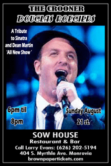 Put simply, Douglas Roegiers is a highly skilled and extremely versatile entertainer who channels back to the great days of the Big Band Swing era. His loyal fans know him as 'The Crooner' and he lives up to the title in every sense of the word, crooning with a smooth and classy sound while singing standards from the Great American Songbook. OK. Think Bobby Darin meets Louis Prima and Bill Haley, with a peppering of Eddie Nichols (The 'Tough-Guy' Crooner). Bam! You've got Douglas Roegiers! This guy is a jazz man's singer. His unique one-of-a-kind style and persona are larger than life and his live stage show is a must-see! Be sure to keep up with his performance schedule and make a date to hang with The Crooner soon. And may all of your hours be happy hours!