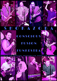 Shokazoba began in 2005 as a 17 piece Fela Kuti tribute project. They now produce original work, aiming to inspire greater human awareness through conscious, funky, dance music with progressive, topical lyrics.
