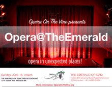 Professional singers and a pianist performing opera, art song, and music theater in Tri-Cities' most popular rock/jazz venue. Where would you least expect to hear opera singing?! That's where you'll find Opera On The Vine OperaOnTheVine.org