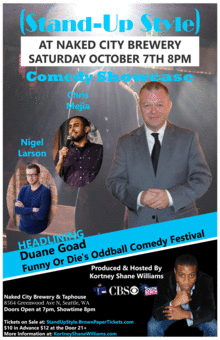 It's the first show of the fall, and we start the season with one of the Northwest's best headliners. Saturday October 7th, (Stand-Up Style) is hosting Seattle's Best comedy show live at Naked City Brewery. Make sure you get your tickets in advance.