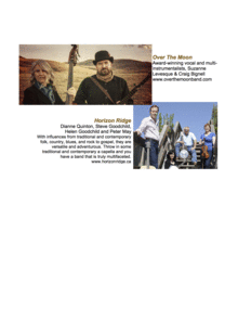 Featuring Over the Moon and Horizon Ridge. Over The Moon - Award-winning vocal and multi-instrumentalists, Suzanne Levesque & Craig Bignell www.overthemoonband.com