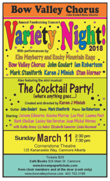 Bow Valley Chorus Annual Fundraising Concert "Variety Night 2018" With performances by: Kim Mayberry and Rocky Mountain Rags, Bow Valley Chorus, John Goulart, Ian Robertson, Mark Staniforth, Karen J. Minish, Stan Horner, Scott Dumas,