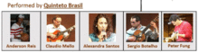 Performed by Quinteto Brasil Alexandra Santos (voice), Sergio Botelho (guitar), Claudio Mello (voice and guitar), Peter Fung (cavaquinho and percussion) and Anderson Reis(percussion)