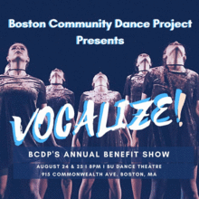 For the past six years Boston Community Dance Project has guest performed at over 100 shows, hosted more than 20 workshops, and given out more than $2000 in scholarships for our CONTEMPORIZE! 2 Day Intensive. We are eager to strengthen the community, give back to ones in need, and celebrate those who should be acknowledge for their talents, acts of kindness, and love toward the performing arts! VOCALIZE!! will be inspiring for all and we hope for you to attend on August 24th and/or August 25th at The BU Dance Theater!