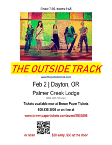 The Outside Tracks marriage of Celtic music, song and dance has been rapturously received around the world. Hailing from Scotland, Ireland, and Cape Breton, its five members are united by a love of traditional music and a commitment to creating new music on this as a foundation. They blend fiddle, accordion, harp, guitar, flute, whistle, step-dance and vocals with breathtaking vitality. Their blend of boundless energy and unmistakable joie de vivre has won them a large following around the globe. All ticket sales are final and there are no refunds.