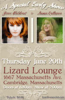 Thursday 6/20 - an early show featuring... SUSAN CATTANEO and JENEE HALSTEAD 6:30 doors / 7:00 show $8 advance and $8 at the door susancattaneo.com jeneehalstead.com