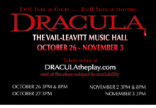 Stoker's seminal tale of horror and mystery has been the subject of many films, innumerable stories, and countless portrayals of the famous vampire. It now comes live on the stage of The Vail-Leavitt Music Hall in Riverhead, NY.