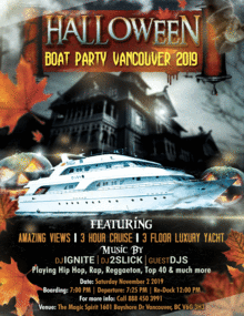 Get your tickets for the craziest, scariest Halloween night frenzy ON A BOAT!! Biggest Halloween boat party in Vancouver. Party on a boat and see ur city like never before with 400 guests.