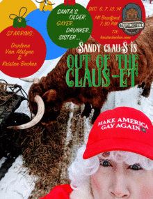 Who ever Said Santa was an only child? This Christmas join Provincetown Brewing Company as it hosts Out of the Claus-et, a live interview with Sandy Claus: Santas older, gayer drunker sister. From #metoo to the elf uprising of 2001, Sandy dishes the dirt with up and coming reality tv journalist, America Stevens. Starring Kristen Becker and Darlene Van Alstyne, the lovable drunkard Sandy Claus sets the record straight about the North Pole and removes the shroud of secrecy that has long hidden the truth around Santas empire.
