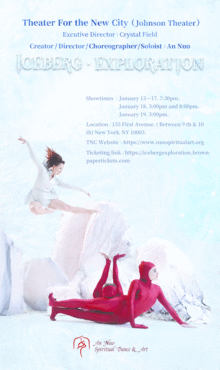 ICEBERG . EXPLORATION is a dramatic dance musical, which narrates a self internal exploration and growth through an adventure story. It awakes and make awareness of protecting our mother earth by presenting the magnificent beauty and power of natural landscapes. It is good for all age range, family, kids, seniors because bring lots of fun!