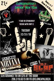 Join us at The Y Sports Bar for an evening to remember while we Ring In The NEW YEAR with live music including Headlining Band; Seattle's own Nirvana Tribute Band : Nevermind - Seattle's Nirvana Tribute!