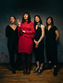 To bring these songs and this record to the stage, Ries has enlisted a powerful group of women; women who can, in their way, take on the feminine, humanist mantle of Her Crooked Heart and make it their own: Siri Undlin (Humbird), Adelyn Strei (Adro), Hilary James (We are the Willows, Bathtub Cig). The quartet blends classical and electric guitar; piano and vintage synths; cello, woodwinds and drum triggers. This merging of acoustic and synthetic sounds is all in service of the voice: four part vocal harmonies that shift from ethereal to an elemental wail, always telling a story of transformation.