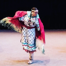 The titles translates from Blackfoot to English as "tellings stories using dances". This work shares stories through hoop dance, using traditional and contemporary styles. This performance is perfect for young audiences.