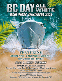 Celebrate BC Day Weekend on a boat and see your city like never before!! Yes, you read that right!! What could be a better way to drink up and celebrate BC day on a summer evening than to PARTY ON A BOAT. Experience your City by cruising through False Creek, English Bay and into the inner harbour.