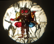 Scary sounds ooze out of the speakers while silhouettes of space monsters flicker on the screen. Recommended for fans of disco lights, fake fur, latex monster masks, and noise putty. Fasten your seatbelts for a wild trip!