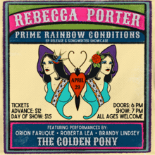 Prime Rainbow Conditions EP Release Show & Songwriter Showcase A singer and songwriter experience (finally) celebrating the February release of Rebecca Porters debut EP - Prime Rainbow Conditions. What better way to celebrate the release of new music than showcasing some of Virginias rising singers, songwriters, musicians, and producers along the way!