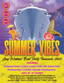 About this event Vancouver Yacht Parties presents Summer Vibes Long Weekend Boat Party Vancouver 2022! This summer ,experience Vancouver City nightlife at its finest while we sip and sail cruising through magnificent False Creek and English Bay on our wildest 4-hour boat party! Join us for an unreal day as we drink up on a sunny summer day and celebrate the long weekend on a PARTY Boat! Be prepared for 4 hours of non-stop partying with great music and stunning views that will be always carved on your memory. The Summer Vibes party happens only once a year, You will be one of Vancouvers #1 Floating Nightclub to celebrate with sunset vibes, tunes, and a whole lot of partying.