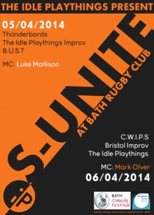 Over the course of the weekend, you'll see the some great comedic work from Bath Uni groups B.U.S.T and C.W.I.P.S, Improvised Comedy from Bristol Improv and the Idle Playthings Improv division and a host of sketches from Thünderbards and the Playthings.