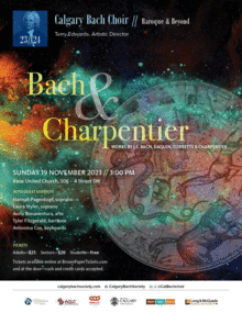 Hannah Pagenkopf, soprano Laura Styler, soprano Aoife Bonaventura, alto Tyler Fitzgerald, bass-baritone Antonina Cox, organ & continuo harpsichord Calgary Bach Choir and Chamber Orchestra Terry Edwards, Artistic Director