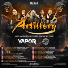ARTILLERY 40th Anniversary Tour w/ Vapor and Potential Threat S.F.