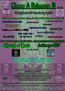There were 17 bands last year, and we expect up to 30 this year. Although our venue for 2013 was beautiful , but just too far away... We will be staying much more local this season to the delight of many... Clonetix is proud to announce CloneAPalooza II take place Friday September 12th thru Sunday September 14th at Silver Ridge Ranch in Easton!
