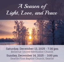- A Season of Light, Love and Peace - Saturday, December 13, 2025, 7:30 pm - Sunday, December 14, 2025, 3:00 pm