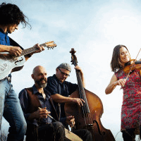 Rani Arbo & daisy mayhem are Rani Arbo (fiddle, guitar), Andrew Kinsey (bass, banjo, ukulele), Anand Nayak (electric and acoustic guitars) and Scott Kessel (percussion). At the helm, Arbo is blessed with an unmistakable voice, both light and sultry, with a hint of tremolo and smoke (Acoustic Guitar). With Kinsey and Nayaks vibrant baritones and Kessels resonant bass, the bands signature lockstep harmonies can shake the rafters or hush the room. Arbos fiddle is sweet and sinewy, while Nayaks guitar stretches across genre lines. Kinseys old- time bass anchors the deep groove of Kessels homemade percussion kit  a truly funky collection of cardboard boxes, tin cans, caulk tubes, packing-tape tambourines, bottle-cap rattles, Mongolian jaw harps, and a vinyl suitcase.