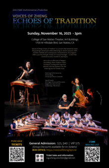 "Voices of Zheng: Echoes of Tradition" is a concert that reverently traces the guzheng's storied past while celebrating its vibrant evolution. With timeless melodies and contemporary interpretations, this program offers a journey through China's rich musical heritage - a voice that continues to echo, transform, and inspire.