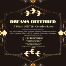 This space is inspired by the artist salons and historical meeting of the minds by between Black artists during periods like the Harlem Renaissance. I hope this can be an open-minded and open-hearted space for Black queer and trans creatives to meet, talk about whatever it is that you create or aspire to, and we can begin to share skills, and radically imagine ways to sustain our art, even as we continue to live through societal collapse.