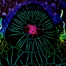 I am a Microscope is a direct animation, created by painting directly onto 35mm film and working with various chemical solvents. The two separate films were originally part of an installation and played side by side, creating new juxtapositions. Those relationships are recreated here in a single, very wide film. For the soundtrack, five different pieces of music were woven together.