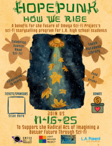The Omega Sci-Fi Project is produced by Light Bringer Project, a nonprofit arts and education organization serving Pasadena and Los Angeles. The Project seeks to empower emerging young writers from Los Angeles County high schools to contribute their unique voices and diverse perspectives to the art of science fiction story writing while tapping into the power of science fiction to examine the greatest challenges and moral dilemmas humanity faces. The heart of this program is a season of free classroom creative Sci-Fi writing workshops culminating in a spring reading featuring our top story submissions!