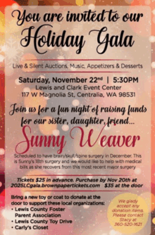 We will also be helping support three very important local organizations. Carlys Closet Lewis County Foster Kids Lewis County Toy Drive Please bring a new coat or toy to donate at the door. Join us for a fun evening for a good cause.