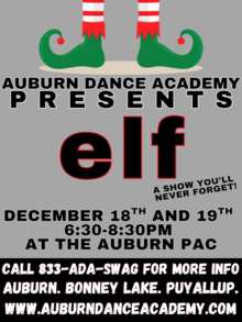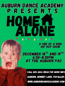 Auburn Dance Academy is pleased to announce our 28th Annual December production - "Home Alone" and "Elf". The adaptation of these popular, smash hit holiday movies is sure to WOW audiences of ALL ages. Come see Buddy the Elf and Kevin as they kick off the holiday season for your family. Auburn Dance Academy some of the Northwest's most accomplished dancers, costumes, and sets under the direction of Jennifer Carrington and Co-Directors Angelica Duncan and Chris Mercado.