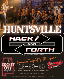 Witness the ultimate comedic exchange! Hack and Forth features a dynamic lineup of comedians from across the Southeast, each delivering a potent three-minute set. Then, watch as our panel of hilarious guests takes center stage for an unscripted and uproarious back-and-forth, offering their unique takes and adding a whole new layer of laughter to the night. It's a fast-paced conversation you won't want to miss!